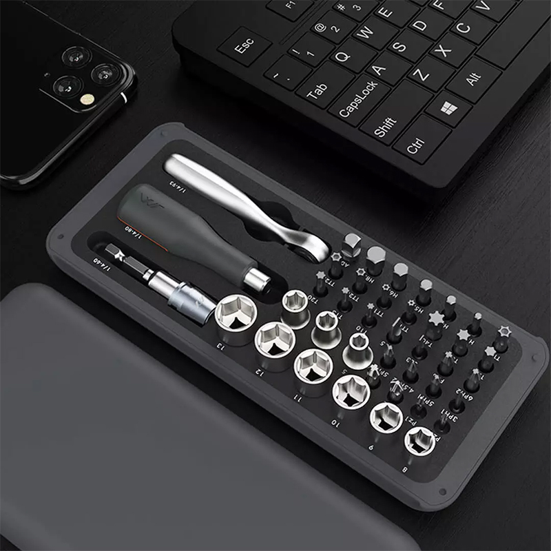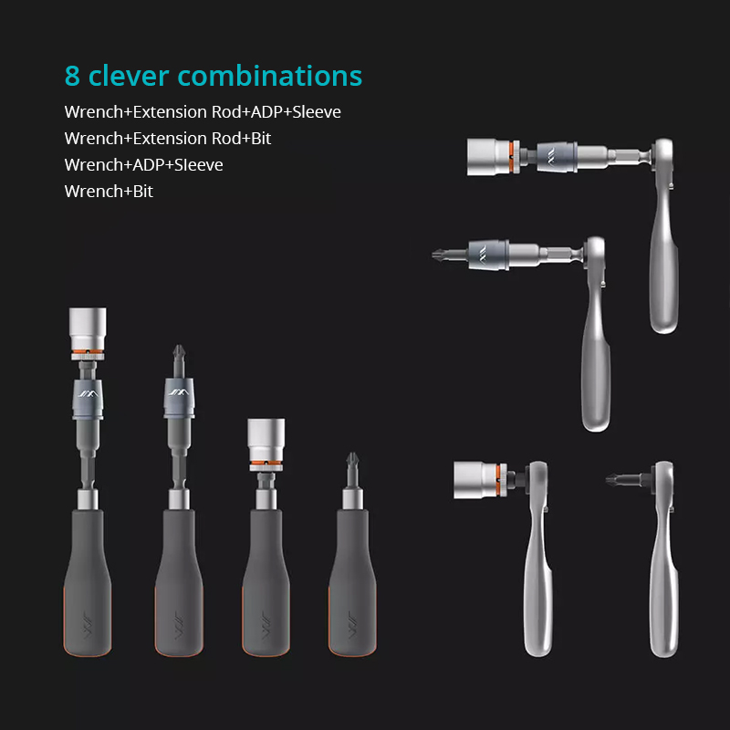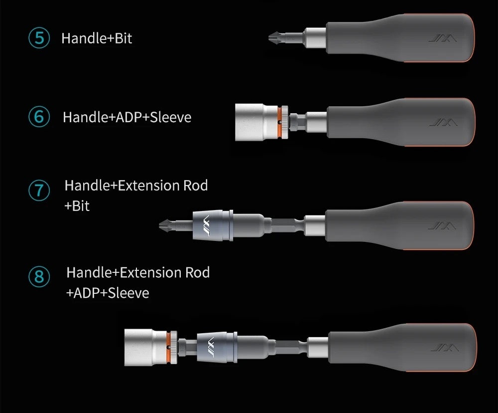 【Versatility Ratchet & Socket Bit Set】JIMIHOME SNAP to GO 1/4" Mini Ratchet Socket and Screwdriver Set 41-Pieces composed of a total 28 pieces of ¼” S2 bits,9 pcs of ¼” hex sockets, providing a fundamental collection of bits and sockets that are required for household or machinery maintenance and repairs. Suitable for some small appliances and light-duty work, like furniture/moto bicycle repair, electrical maintenance, crafts DIY, computer assembly, switch installation, etc.