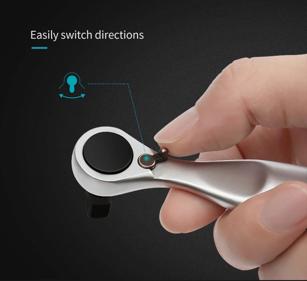 【Mini Ratchet and 1/4" Socket Set】The sockets and ratchet are metric in size and they cover 5 mm to 13 mm. All sockets are molded into the storage slot and it is easy to identify. Premium quality materials and optimized socket design for optimum strength and extreme durability. These durable sockets are forged from chrome alloy steel designed to stand up to the rigors of frequent use and are coated with a protective finish that wipes clean easily and inhibits corrosion. Laser-etched markings for size and type readability and wear resistance. 72-Tooth mini size ratchet need only a 5° arc swing to turn fasteners. Our mini ratchet equipped with quick-release switch and reversible lever for rapid twisting.