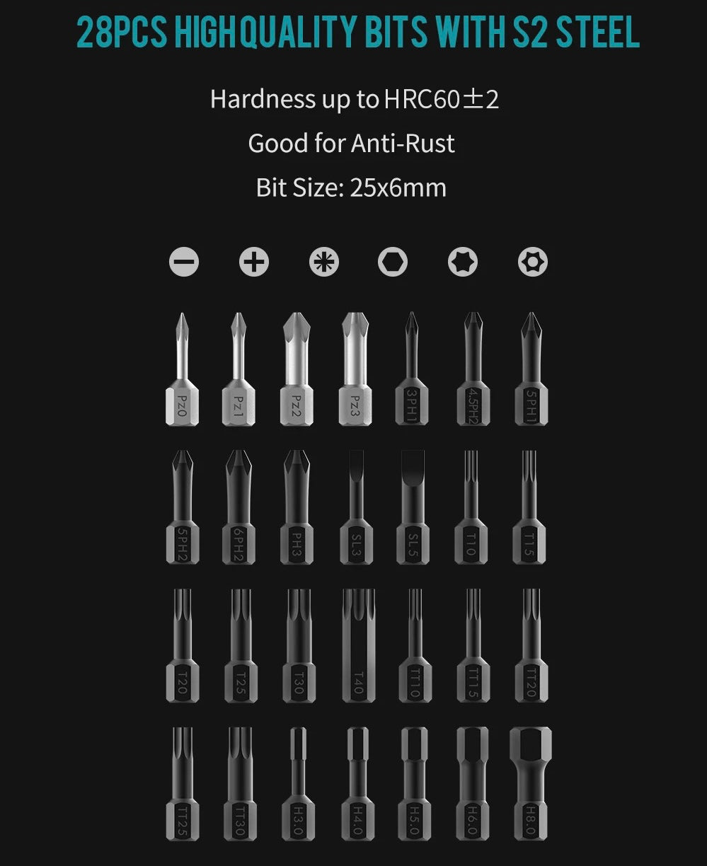 【Durability & Reliability S2 Bits】JIMIHOME's ¼” bits are composed of high-performance and durable S2 steel with a 60HRC hardness, ensuring exceptional torque and hardness. The precision CNC machined tips offer a consistent geometric symmetry, resulting in precise fitting and torque without the risk of slippage. Each bit is conveniently marked with a laser to enable quick identification of its size. Additionally, the magnetic bit tips can catch screws in case of accidental dropping or losing, preventing damage or loss.