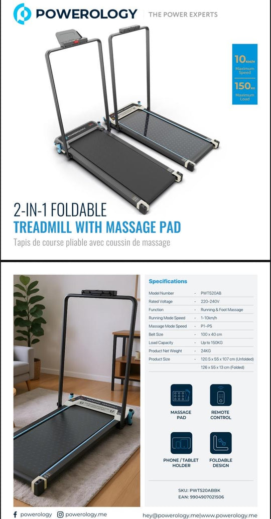 جهاز مشي قابل للطي 2 في 1 مع وسادة تدليك من Powerology