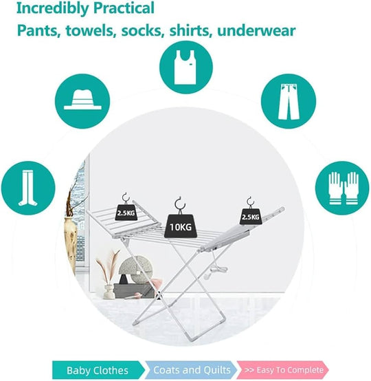 منشر ملابس كهربائي قابل للطي مجفف ملابس داخلي محمول مزوّد بقضبان تسخين وهواء ساخن آمن للملابس