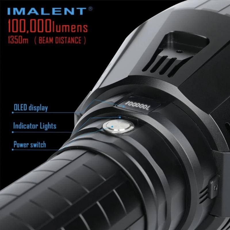 4.With IMALENT's unique design with bright plating process optical reflector and 18pcs CREE XHP70 2nd LEDs,the MS18 delivers a max output up to 100000 lumens and a far reaching distance of 1350meters,push you boundaries day and lights,make it a perfect search and rescue flashlight!