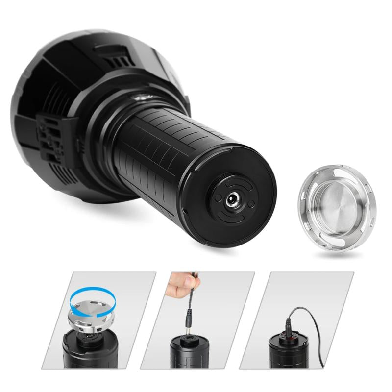 1.MS18,"Ambassador of light",utilizes 18 pieces of American CREE XHP70 2nd LEDs with a maximum output up to 100000LM and long range up to 1350 meters, MS18 will bring you absolute shock in the night.