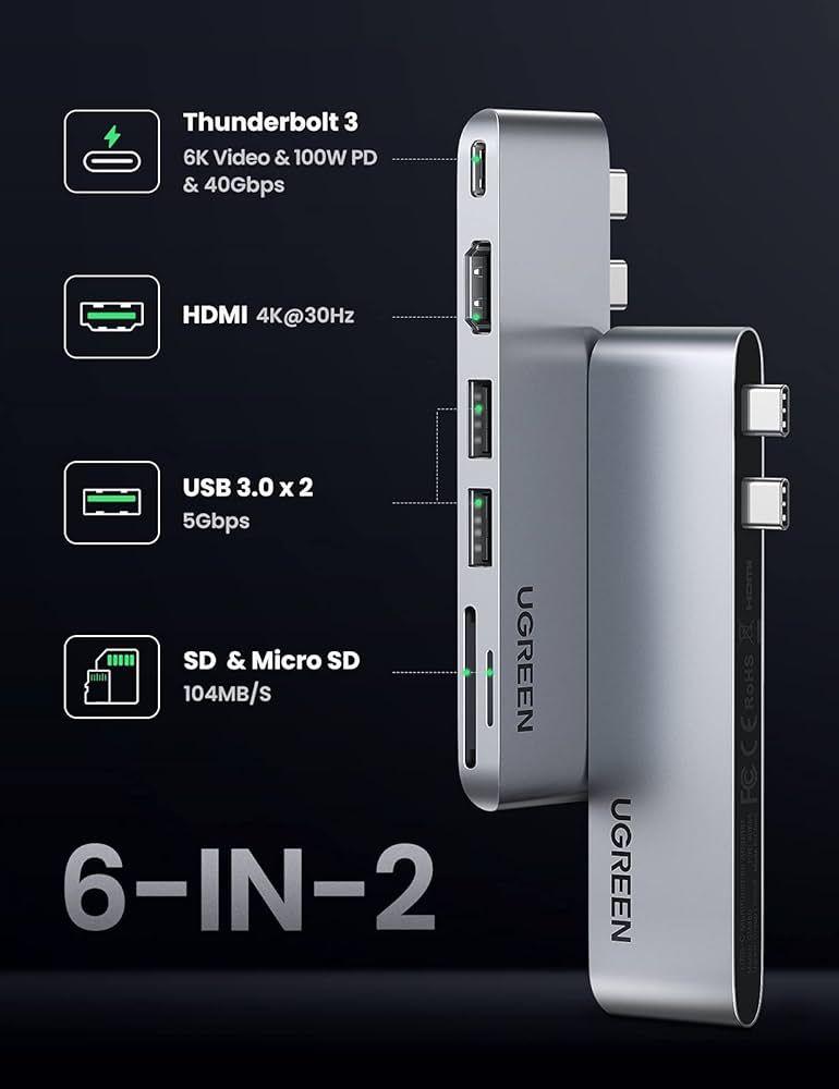 ✨ UGREEN 6-in-2 USB-C Hub – الحل الأمثل لتوسيع إمكانيات MacBook الخاص بك! ✨