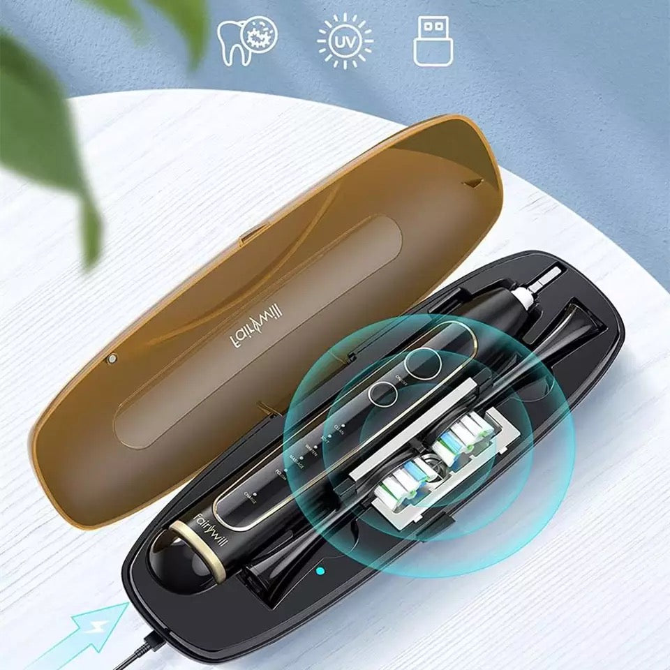 مشط أسنان كهربائي مع تعقيم أثناء الشحن: يضمن لك حياة صحية - حافظة محمولة مع معقم تحمي رحلتك الرائعة
