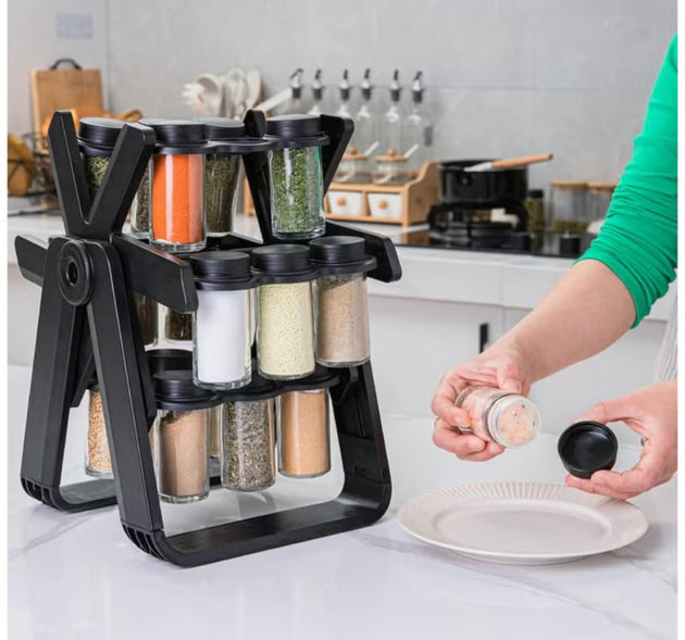منظم التوابل بـ 18 عبوة زجاجية بسعة 100 مل – أناقة وتنظيم مثالي لمطبخك