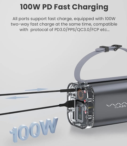 باور بنك بسعة 40000 مللي أمبير مع شحن سريع 100 وات وكشاف خارجي للتخييم من VyVylabs