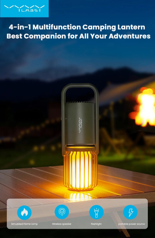 مصباح محمول 4 في 1 للتخييم مع مكبر صوت بلوتوث و شاحن محمول 8000 مللي أمبير من Vyvylabs
