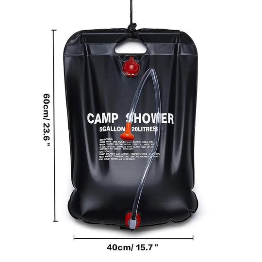 حقيبة استحمام محمولة 20 لتر مع خرطوم تبديل ورأس بلاستيكي سعة كبيرة لتخزين المياه للتخييم والتنزه في الهواء الطلق وغسل النزهات