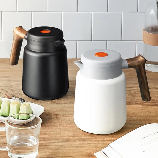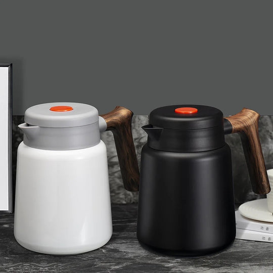دالة المشروبات الساخنة والباردة سعة 1000 ملي مقاومة للصدأ مع ممسك خشبي