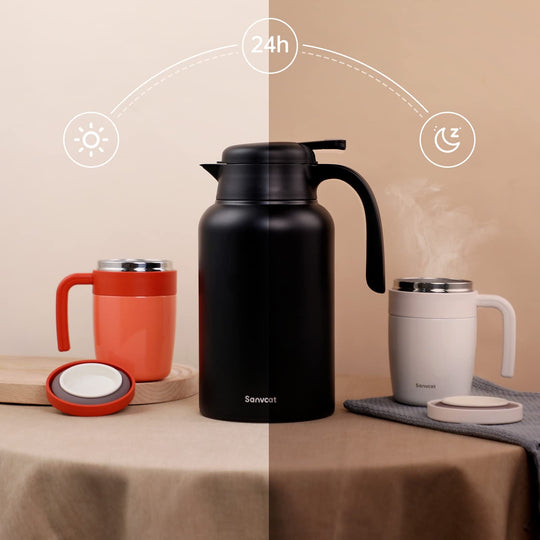 يمكن استخدامها في المنزل، والمكتب، والتخييم، والاجتماعات، وغيرها. الاحتفاظ بالدفء والبرودة: الجزء الداخلي من الفولاذ المقاوم للصدأ في إبريق الماء الحراري المعزول بالفراغ يمكنه الاحتفاظ بالدفء لمدة 24 ساعة تقريبًا عند 143 درجة فهرنهايت (62 درجة...Regular price AED 135.00 -