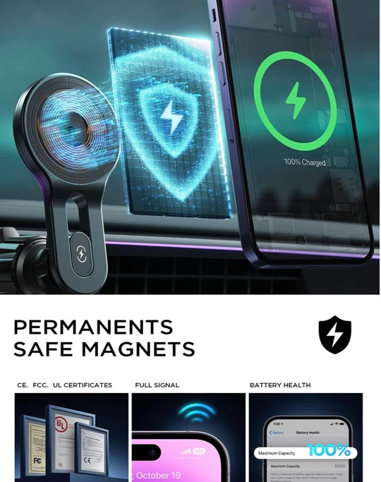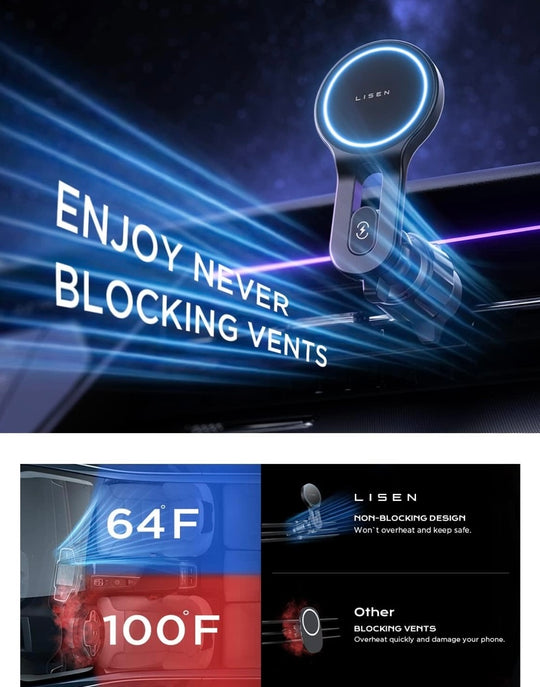 ستاند السيارة بخاصية الماغ سيف وشاحن لاسلكي بقوة 15 واط من LISEN
