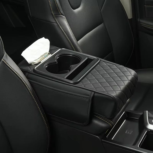 Car Armrest Cushion with Storage Bag and Built-in Tissue Box