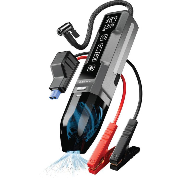 جهاز الطوارئ متعدد الاستخدامات مكنسة للسيارة وجامب استارتر ومنفاخ للعجلات مع اضاءة من Porodo