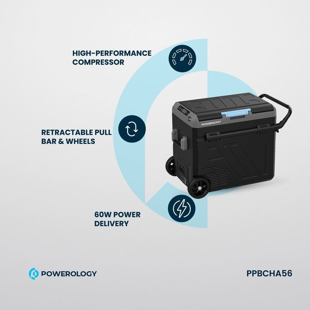 Powerology Smart Dual Compartment Refrigerator and Freezer, 20800mAh Battery, 60W PD, 57W Dual Zone Cooling
