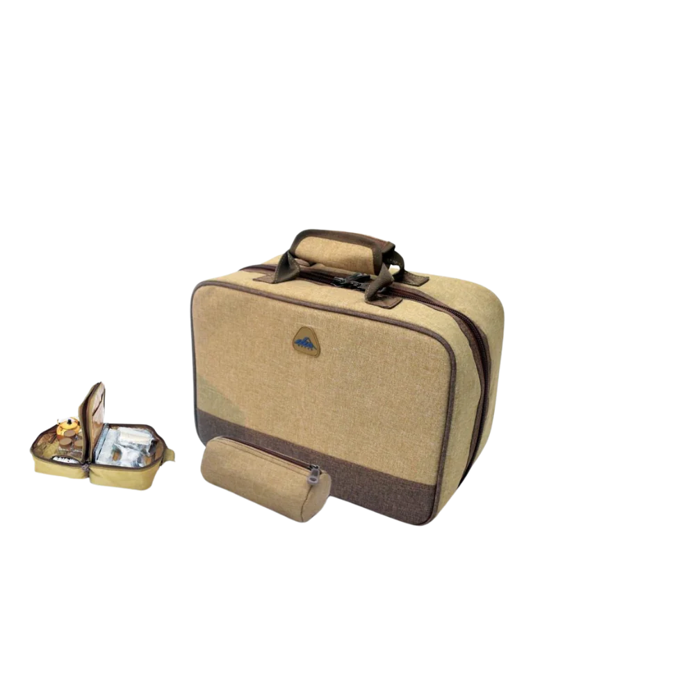Keep your coffee and tea set organized and protected on the go with the MT-36410 Food Bag . Featuring a practical design in a stylish khaki color, it is ideal for use on trips, camping, and outdoor events.