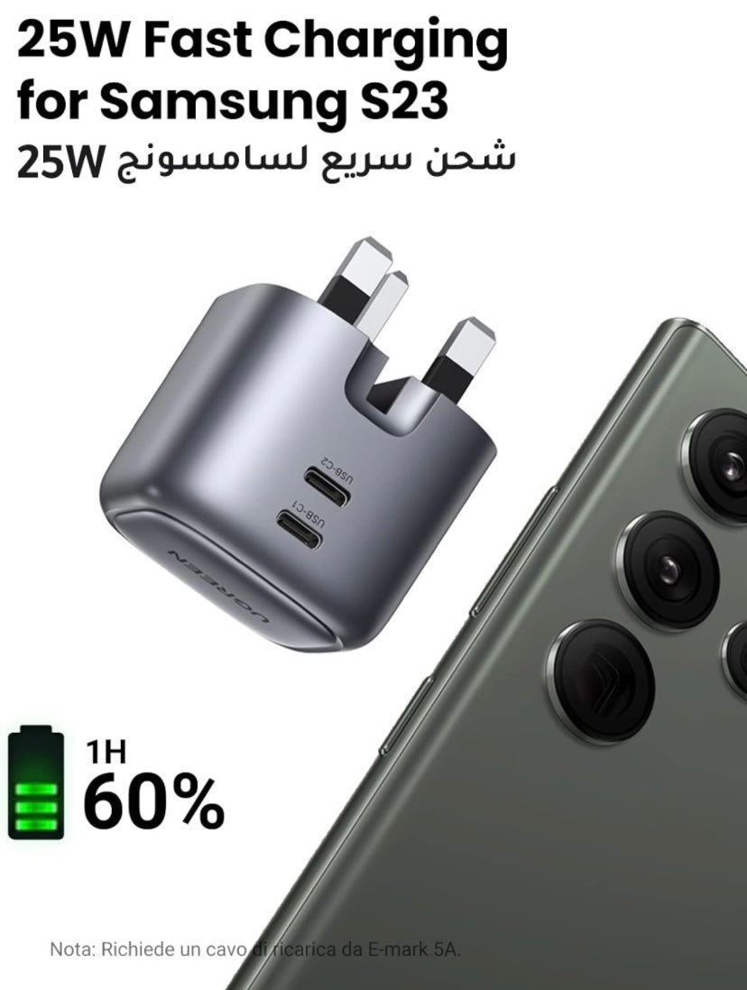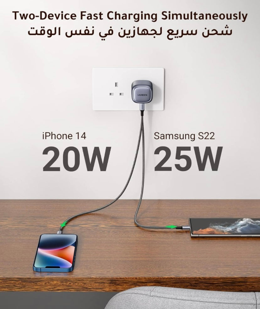 Thanks to the Ugreen Nexode Dual USB-C PD GaN Fast Charger 45W, you can avail fast charging of your mobile devices easily and efficiently while on the go.