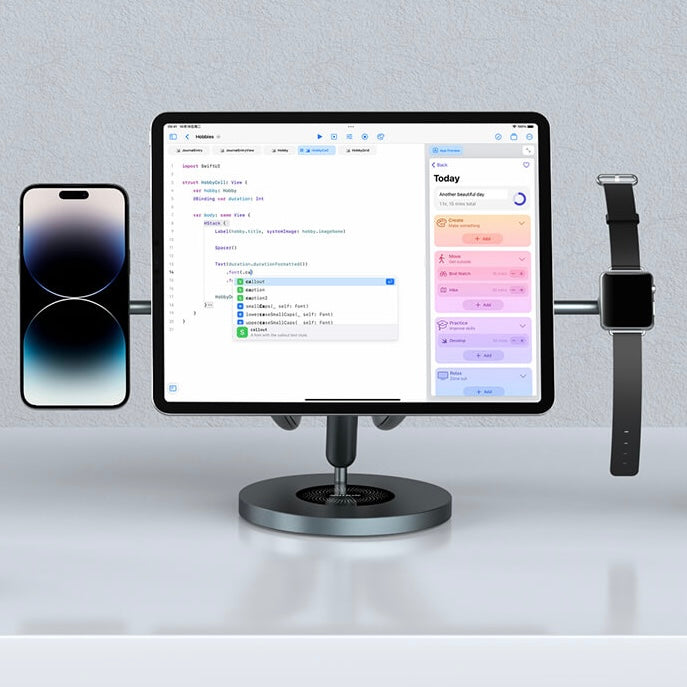 Magnetic stand to install more than one device at the same time for iPhone, iPad, Apple Watch, headphones