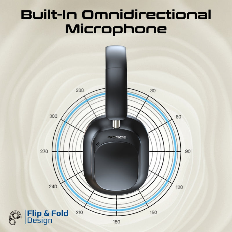 Promate Professional Over-Ear Headphones with Hi-Res Audio and Hybrid Noise Cancelling with Detachable Magnetic Touchscreen