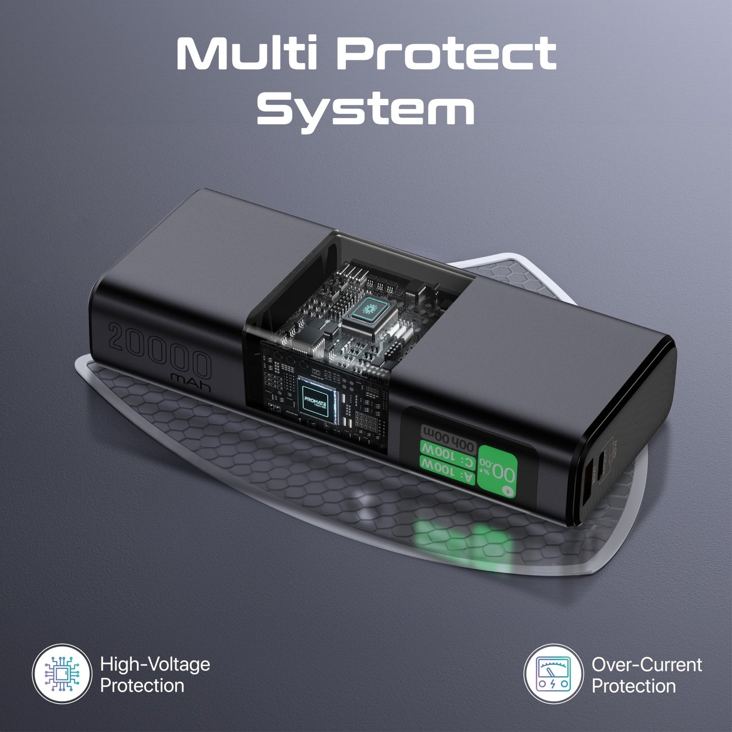 Promate portable charger with a capacity of 20,000 mAh and a power of 130 watts, with a screen to display the charging percentage, providing you with the ability to charge your devices quickly and efficiently while on the go.
