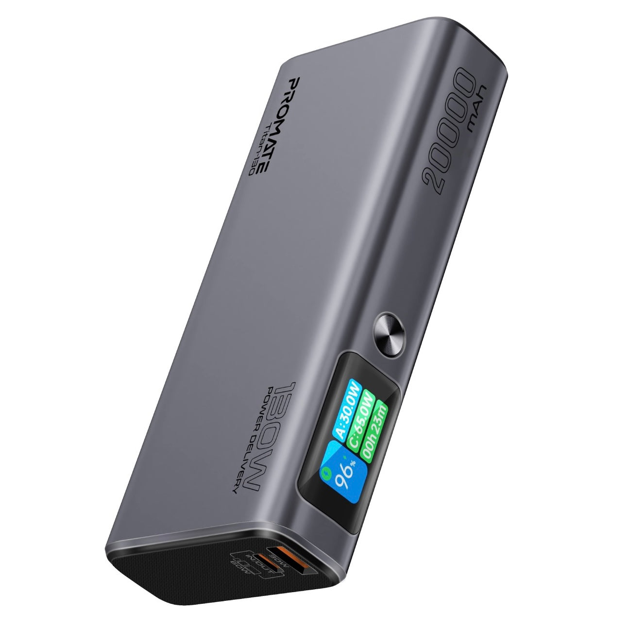 Power bank with a capacity of 20,000 mAh, 130 watts, with a screen to display the charging percentage from Promate