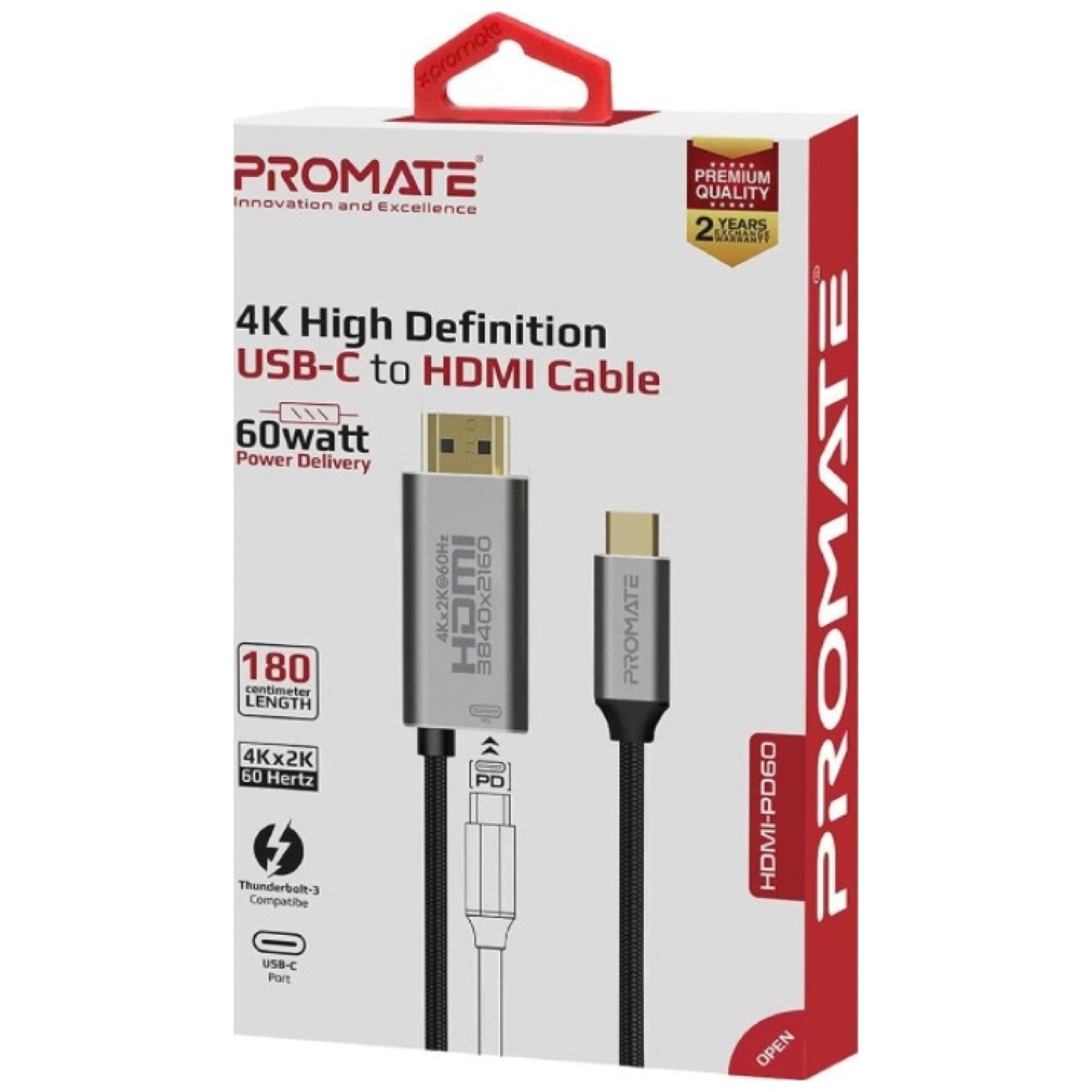 • Aluminum Alloy Shell: The cable also has a robust aluminum shell to prevent corrosion and ensure that the HDMI-PD60 will outlast all your other USB cables.