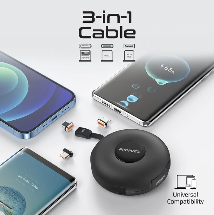 • 3-in-1 Cable: Carry a single cable for all your devices, as Quiver features USB-C, Lightning and Micro-USB tips for maximum convenience