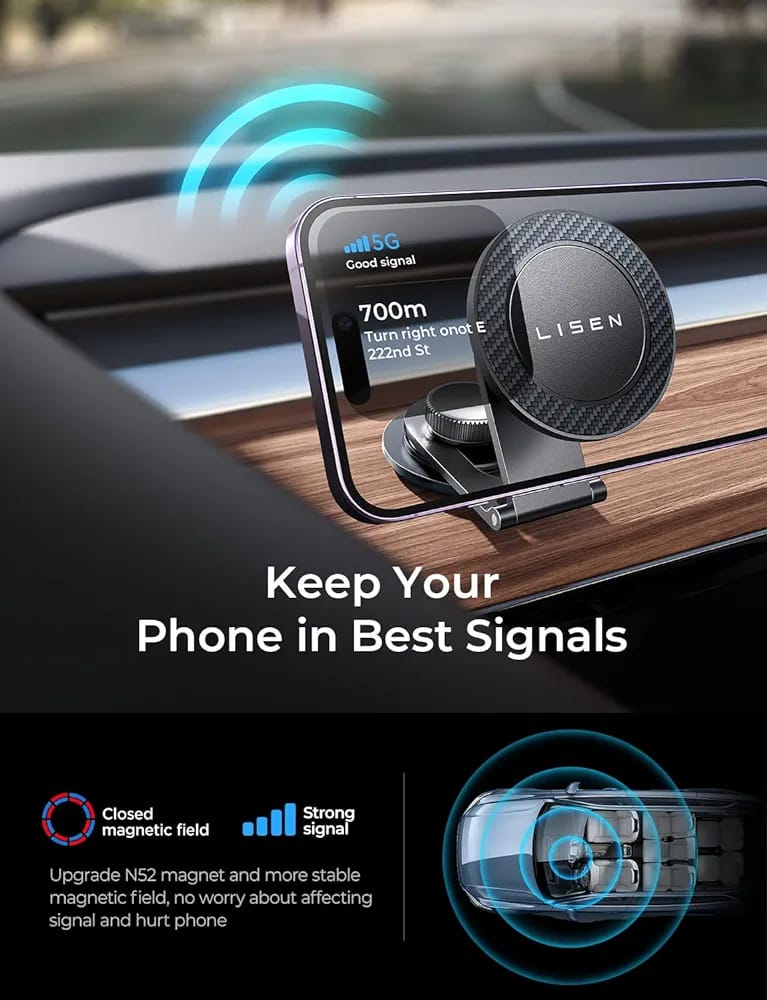 Using the LISEN Magsafe Universal Car Phone Holder, you can enjoy safe and comfortable trips without worrying about your phone being installed properly.
