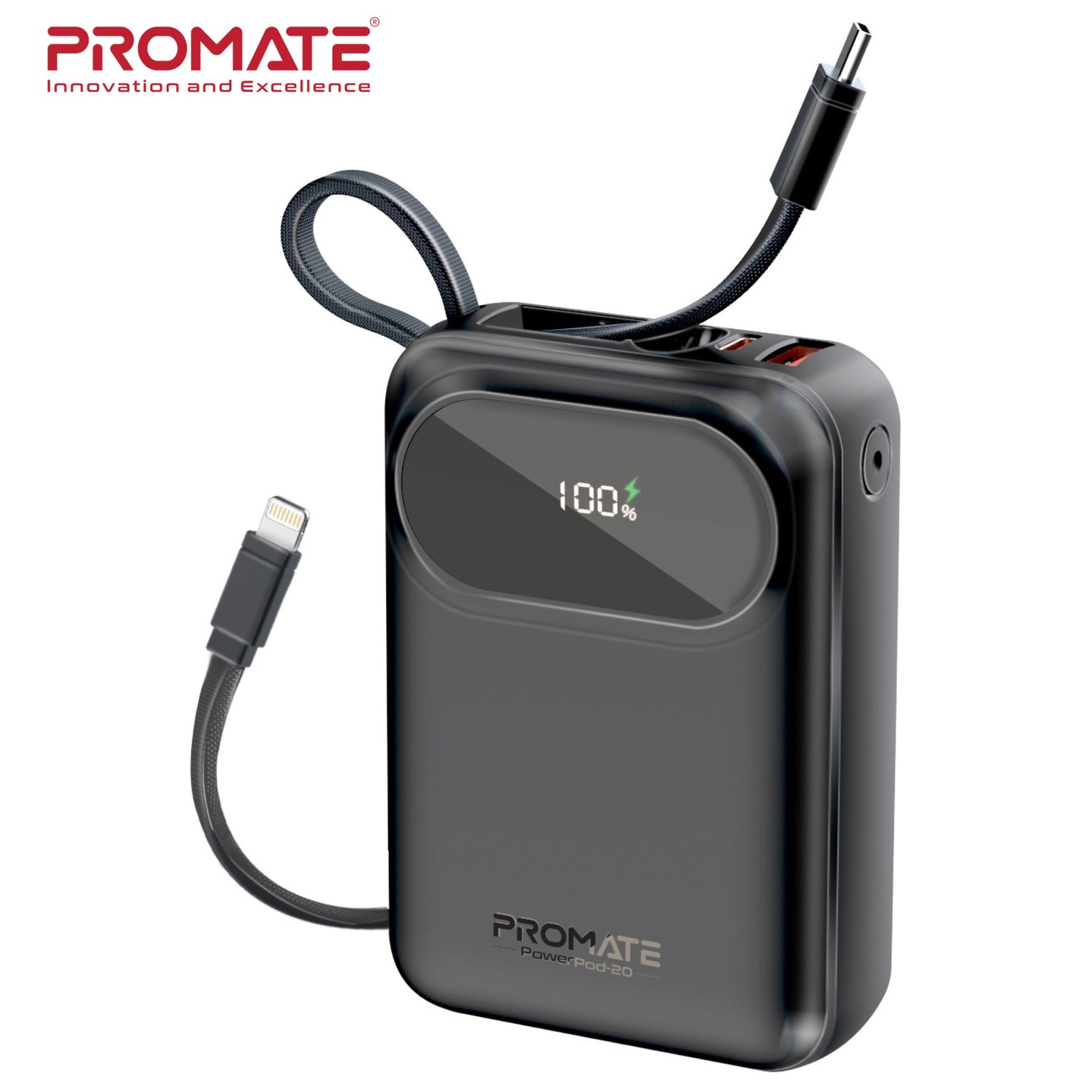 Charge and control your day with PowerPod-10, a 10,000mAh power bank that also has a built-in USB-C cable. Additionally, this versatile bank also features a 35W USB-C charging port and an 18W USB-A QC 3.0 port. Built-in multi-protection, over-current protection, over-charging protection and more combine to ensure safe charging for all your connected devices. The smart display with indicator LED keeps you updated on the remaining charge in your power bank. With comfort, portability and reliability, PowerPod-10 is the perfect accessory for modern life.
