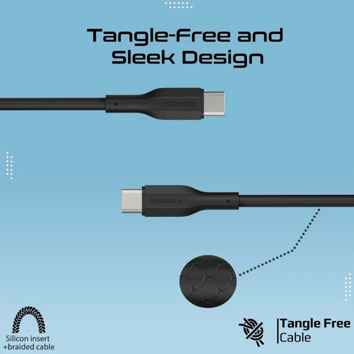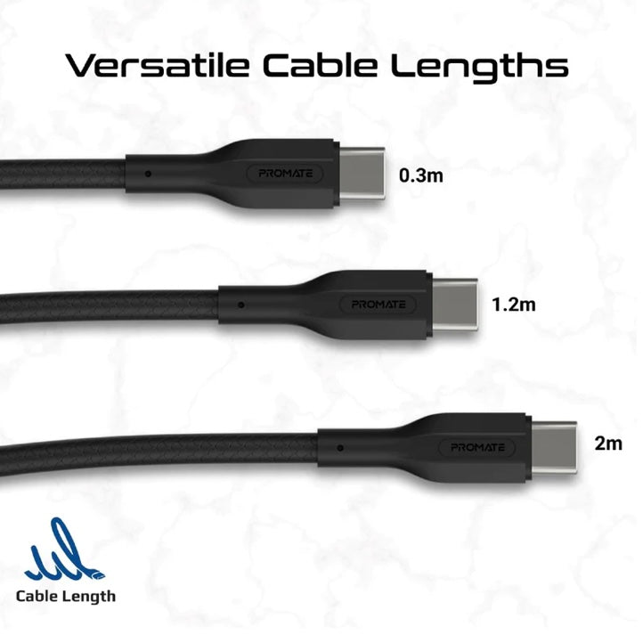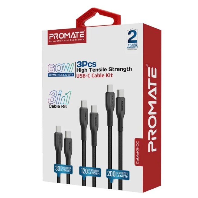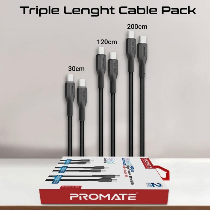Promate CableKit-CC 3Pcs High Tensile Strength Data & Charge USB-C Cable kit 60W
