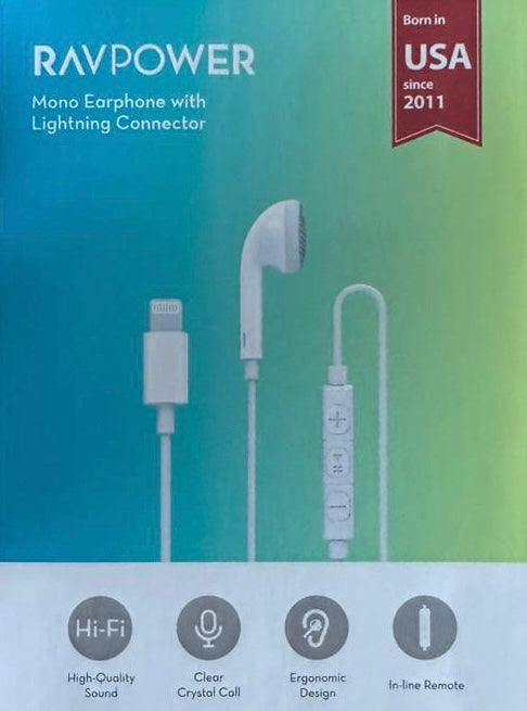 The Ravpower single ear headphone combines excellent performance with stylish design. Specifically created to provide a great and comfortable listening experience for Apple device users. Get exceptional sound quality and all-day comfort with this headphone with Lightning connector.
