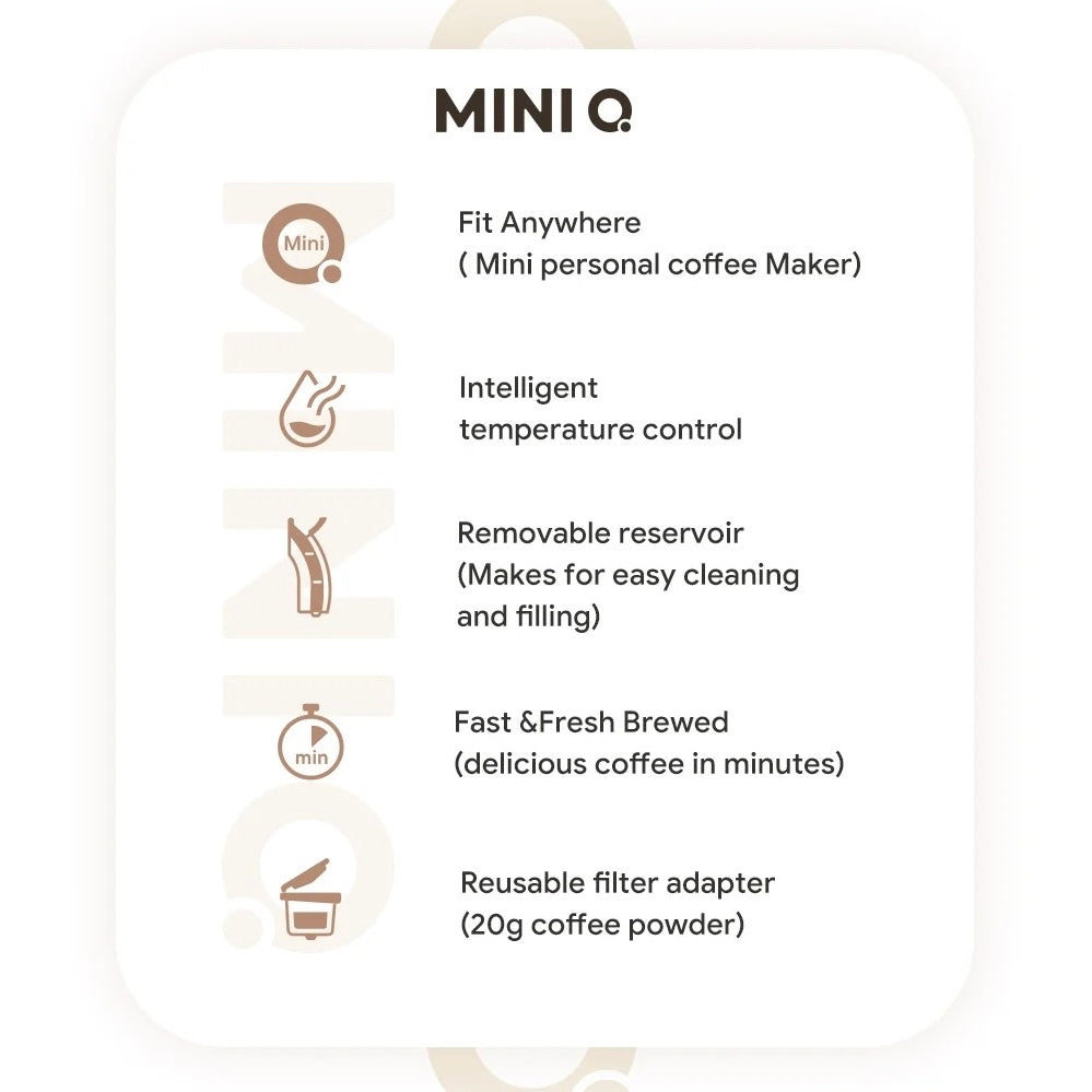 With the Mini Q portable coffee machine, you can enjoy a cup of delicious coffee anytime and anywhere. You will find that this machine makes your life easier and adds a touch of luxury to any day.