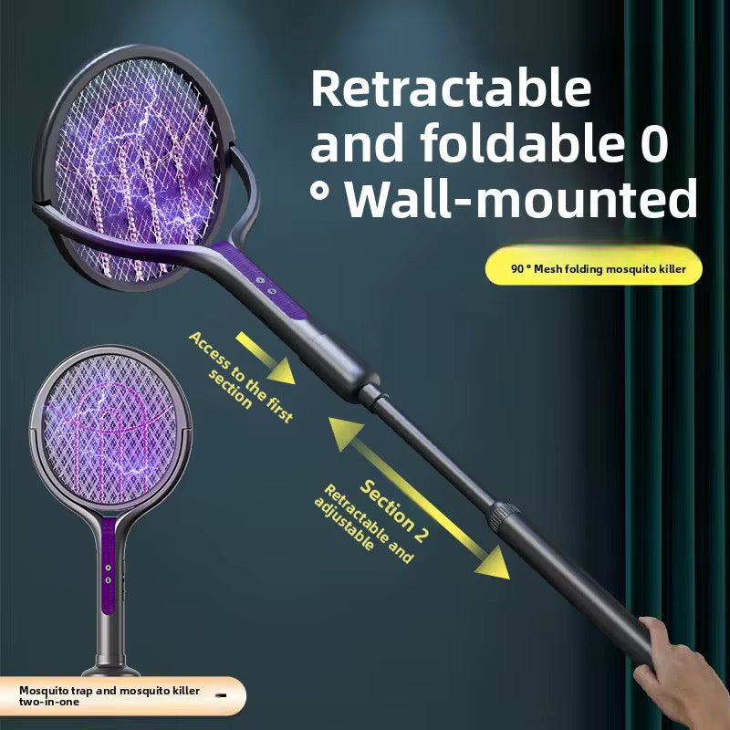 Rechargeable Electric Insect Swatter with 90° Rotation and Extendable Telescopic Arm
