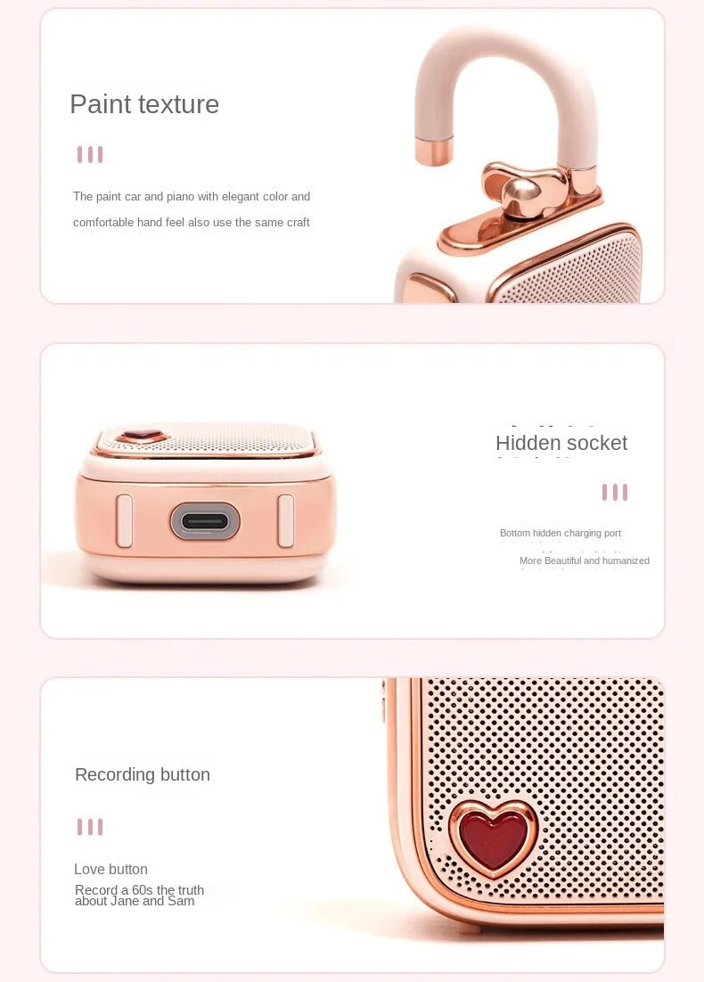 In addition, the mini speaker has exciting additional features such as a concentric lock that adds a touch of security and style. You can use it as a romantic gift for girls when confessing feelings or on special occasions.