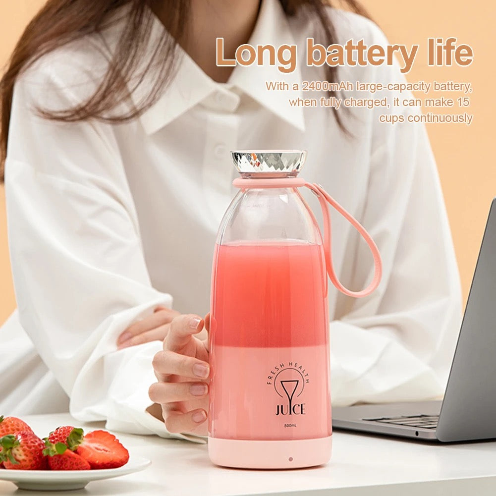 The portable electric fruit juicer is a unique device used to mix fresh fruits and prepare delicious juices. This blender is battery operated, which means that you do not need an electrical cord to operate it.