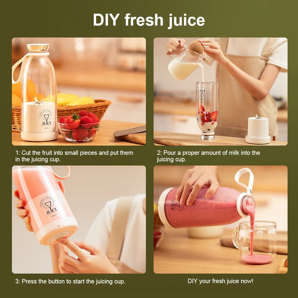 Enjoy a convenient way to blend fruits and prepare healthy drinks with the portable electric juicer. Take advantage of the power of the sharp and rechargeable blades to enjoy fresh juices and delicious drinks at any moment and anywhere. Try it now and enjoy a healthy and refreshing food experience with ease.