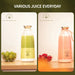 The juicer is powered by a 2400 mAh rechargeable battery, which provides you freedom of movement and ease of use without the need to connect it to an electrical power source. Its portable design makes it ideal for use at home and on the go, allowing you to prepare fresh juices anytime and anywhere.