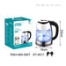 WINNING STAR High Performance Electric Kettle , 220-240V , 1500W . Made of SS201 stainless steel and high quality borosilicate glass, ensuring durability and elegant appearance. It has a 0.4cm thick heating base and an automatic boil-dry protection system.