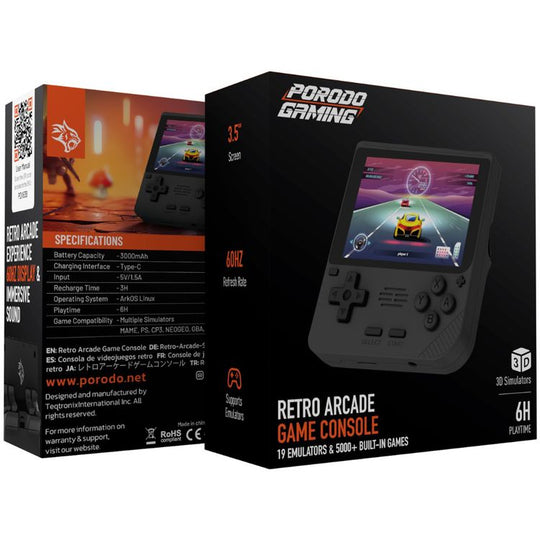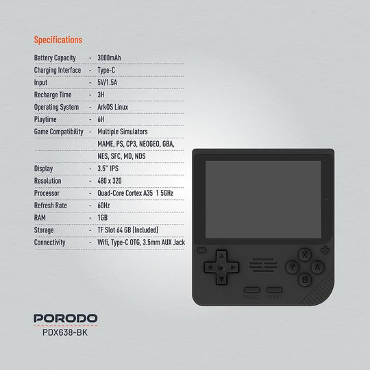 Classic Game Console with 3.5-inch Screen, 6 Hours of Playtime, 5000+ Games, Ergonomic Design and Immersive Sound by Porodo