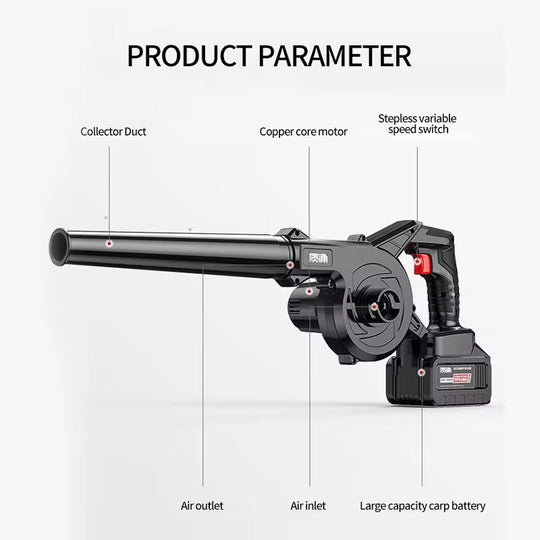 Handheld Electric Blower with Vacuum - Rechargeable with Interchangeable Batteries, Dual Suction and Blowing