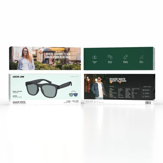 No reviewsThe Green Lion Shade Mate Smart Glasses blend modern elegance and smart technology into one design ideal for tech enthusiasts and sophisticated style. These glasses feature interchangeable two-tone lenses (grey and blue) to complement your everyday...Sale price AED 135.00Regular price AED 190.00 -