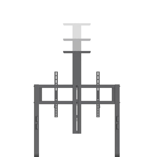 Metal monitor stand with four lockable wheels and a modern design for offices and homes