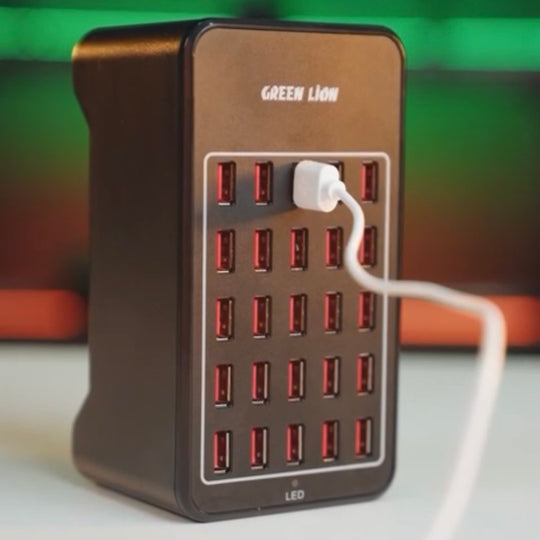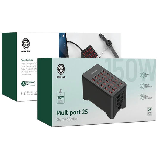 Out of stock                        Vendor: الابداع green lion multiport 25 charging station https://www.instagram.com/reel/CvfZKT5gj8D/?igshid=MzRlODBiNWFlZA== Green Lion Multiport 25 Charging Station -USB Single Port Output: 5V/2.4A -Total Power: DC 5V/30A Max -150W Power Adapter -Smart Conversion -Fire Prevention -25 USB PortsRegular price AED 125.00