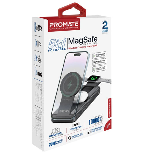 Vendor: Promate 5-in-1 wireless charging power bank to charge all devices from Promate : Explanatory video https://www.instagram.com/reel/Cwkd0srp_sX/?igshid=MzRlODBiNWFlZA== Promate 5-in-1 Magsafe Compatible Wireless Power Bank 15W Magsafe wireless charging Fast wireless charging for AirPods Fast wireless charging for iWatch 20W Power Delivery Technology 15W wireless charging 10000mAh battery capacity Universal...Regular price AED 235.00