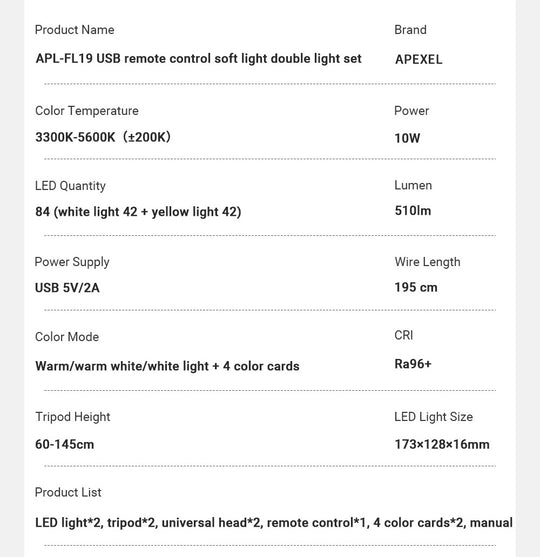 https://www.instagram.com/reel/CtWC-hKJTIk/?igshid=ZWQyN2ExYTkwZQ== This set is from APEXEL Including 2pcs RGB photography and video lights, with phone holder and tripod, provide exceptional illumination for your photo sessions. The lights feature a color balance of 3300K to 5600K, which...Regular price AED 225.00 -