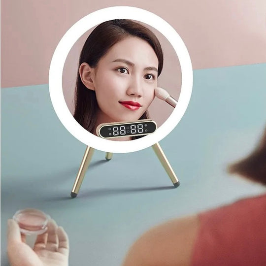 Smart magic mirror with bluetooth speaker, wireless charging and stand