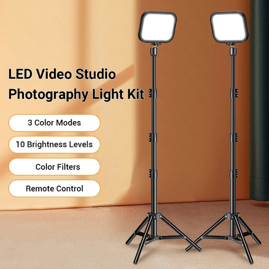 APEXEL 2-Piece RGB Photography & Video Light Kit with Phone Holder and Tripod for Studio Photography Light and Fill Light with Color Balance Range 3300K to 5600K.