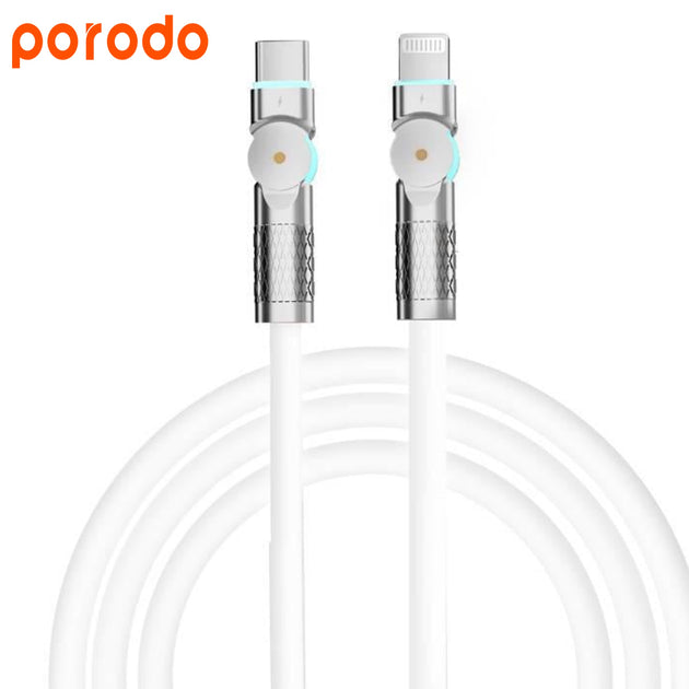 Porodo Flexible Lightning Data Charging and Data Transfer Cable with 180 Degree Rotating Head