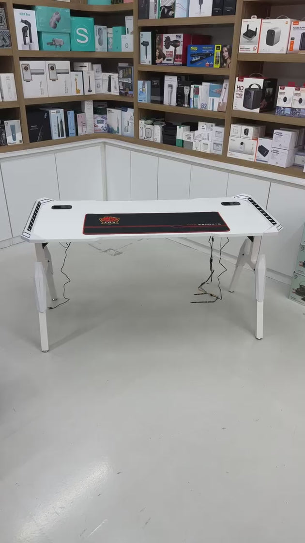 The smart gaming table supports USB charging ports and wireless charging, measuring 140 x 160 cm