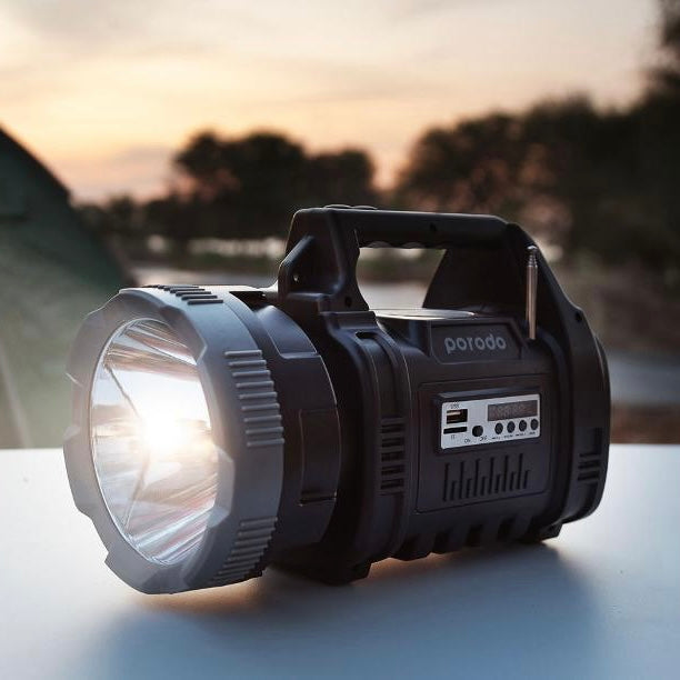 Porodo 10W 3-in-1 Outdoor Flashlight with Radio and Bluetooth Speaker
